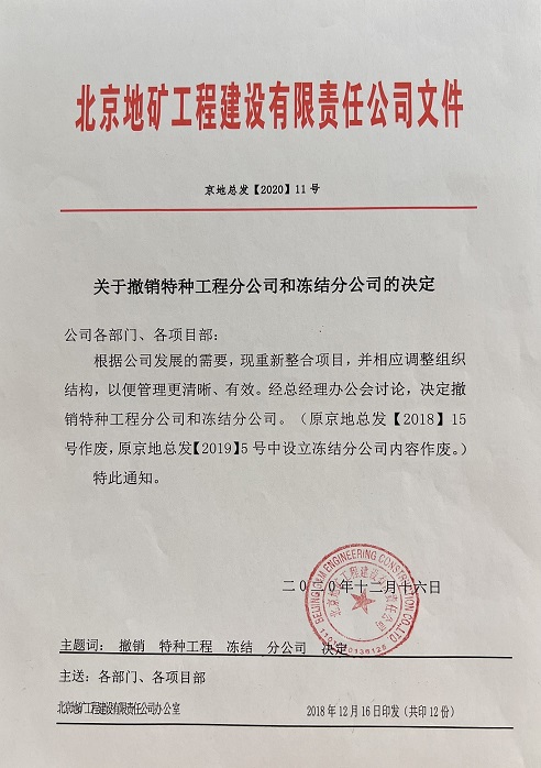 關(guān)于撤銷特種分公司和凍結(jié)分公司的決定